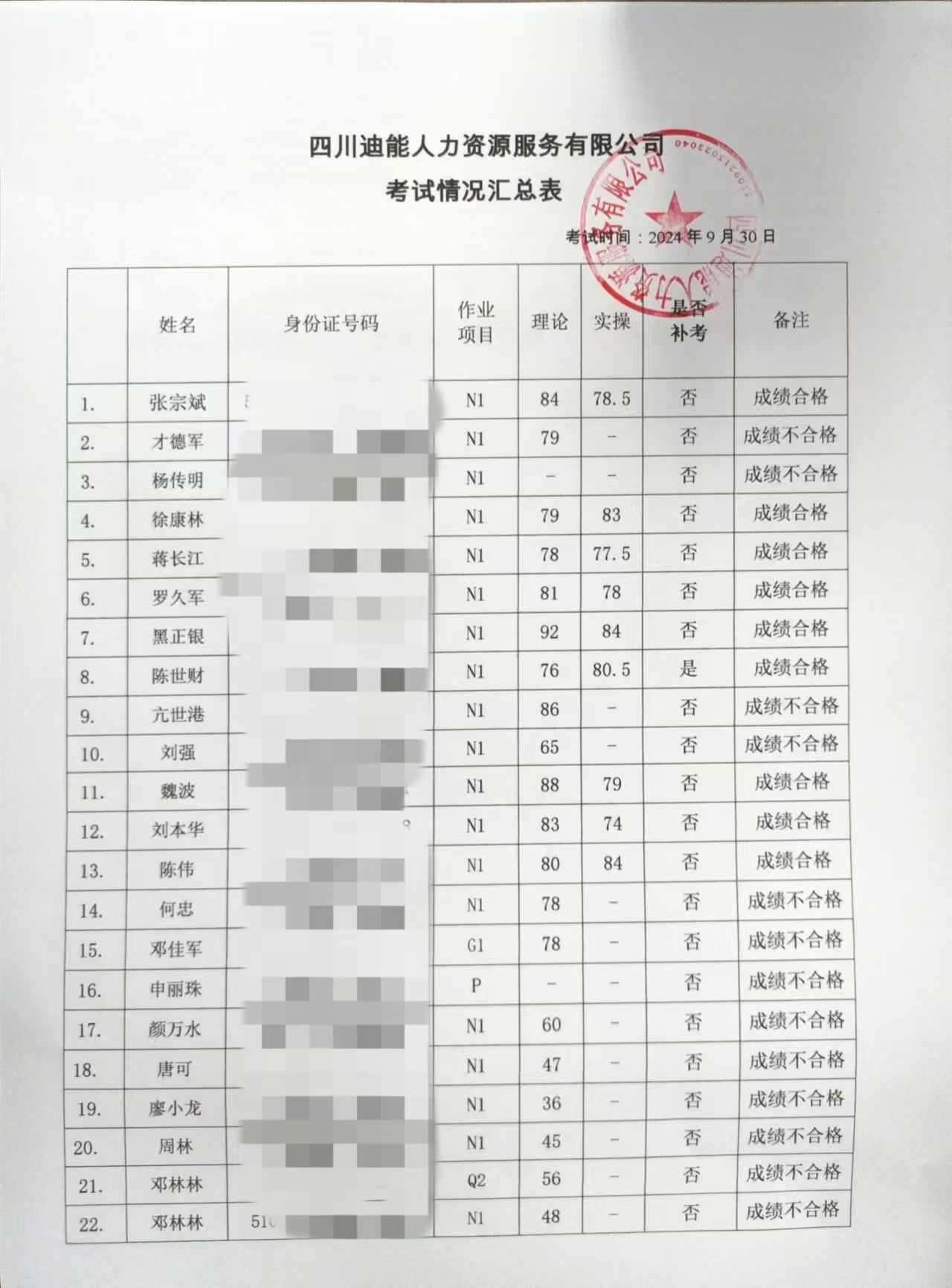 第20240930期考试成绩通知-四川迪能人力资源服务有限公司
